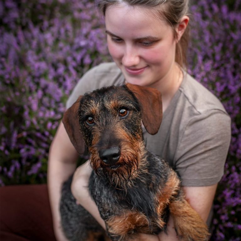 Wir, das bin ich Nathalie und mein Rauhaardackel Otis, dessen Namen im Label steckt und dessen Kopf das Logo ziert.